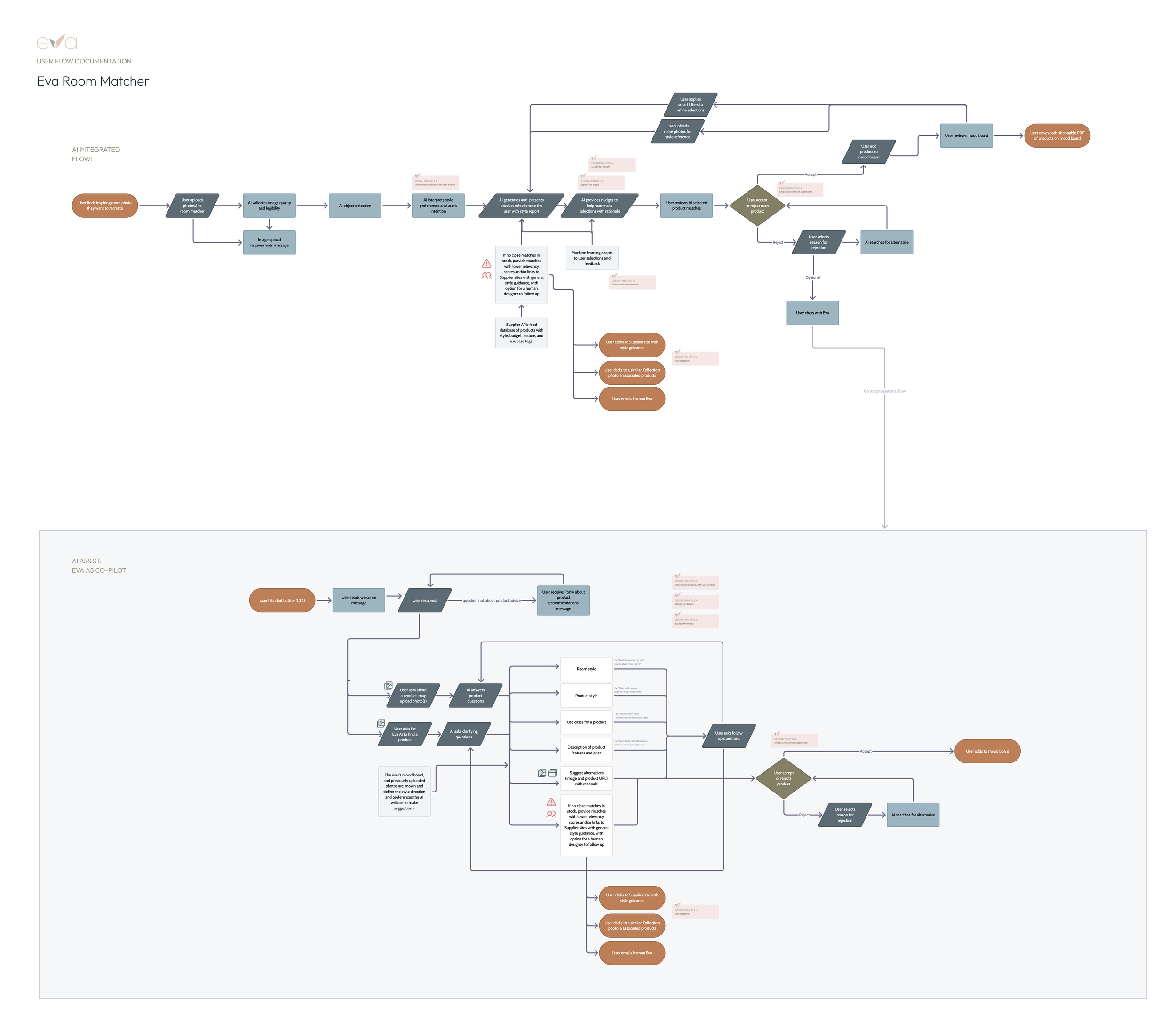 Upload an inspiration photo and Eva will identify the style and elements to match them with curated, shoppable products that are budget- and style-aligned. Eva subtly helps users understand and select from product recommendations and avoid costly mistakes. Create a space you love, stress-free.